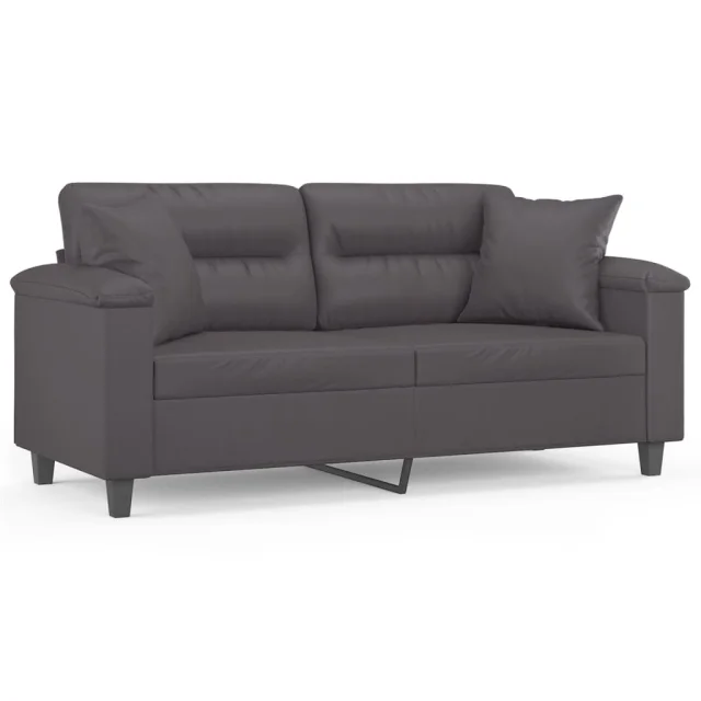 kavč - Sofa - Kanape dvosed z okrasnimi blazinami siv 140 cm umetno usnje