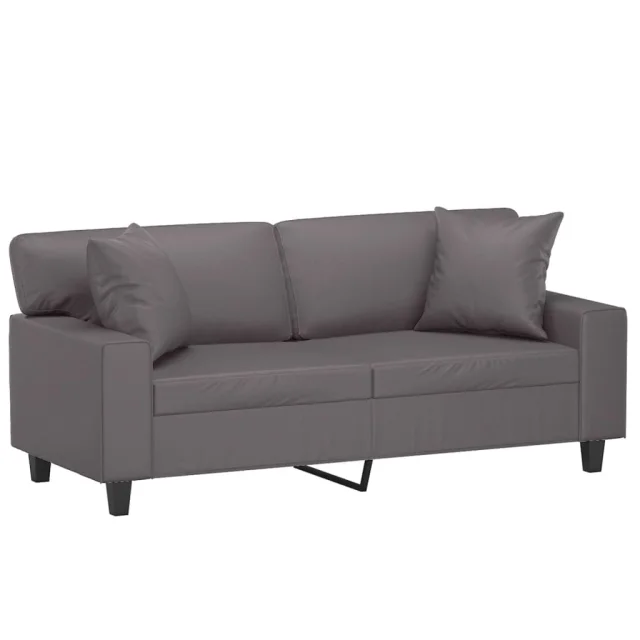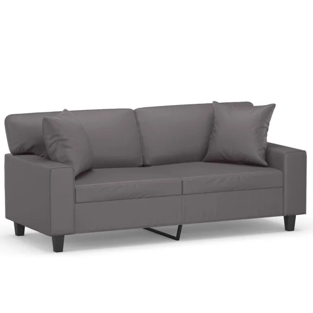 kavč - Sofa - Kanape dvosed z okrasnimi blazinami siv 140 cm umetno usnje