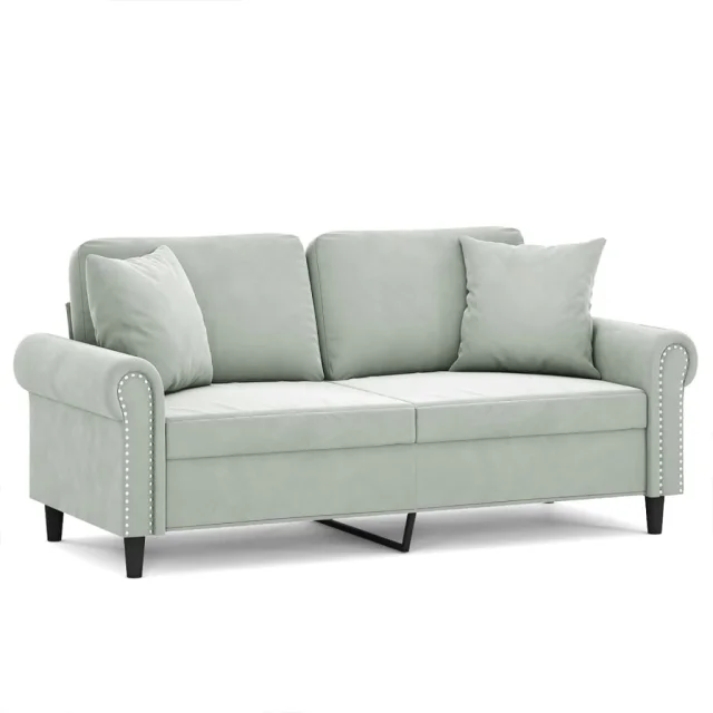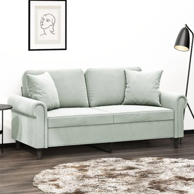 kavč - Sofa - Kanape dvosed z okrasnimi blazinami svetlo siv 140 cm žamet