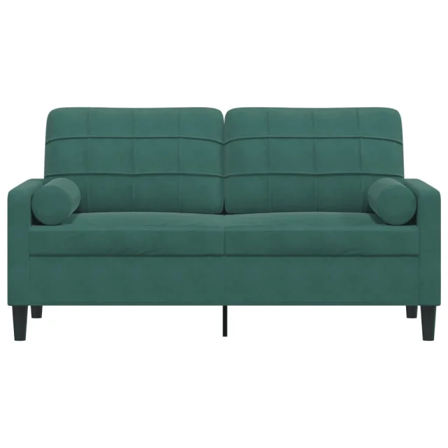 kavč - Sofa - Kanape dvosed z okrasnimi blazinami temno zelen 140 cm žamet