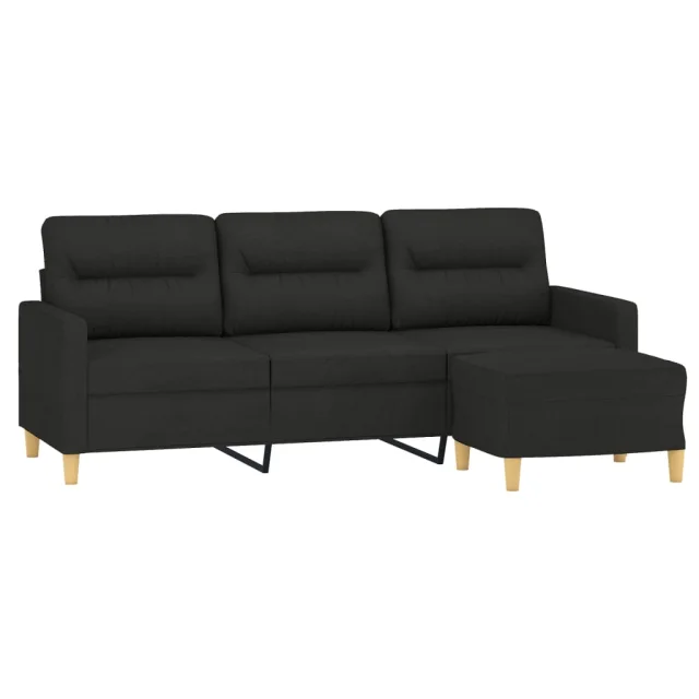 kavč - Sofa - Kanape s stolčkom za noge črn 180 cm blago