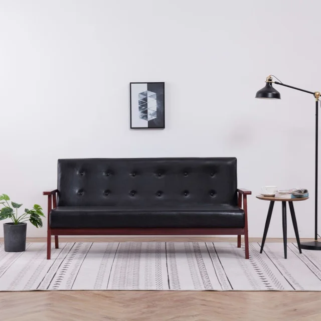 Ta retro kavč trosed bo odličen dekorativni dodatek za vašo dnevno sobo. Ima močan lesen okvir, oblečen pa je v mehko in udobno umetno usnje, ki je podloženo z debelo peno za dodatno udobje.