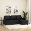 kavč - Sofa - Kanape trosed s stolčkom za noge črn 180 cm umetno usnje