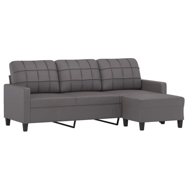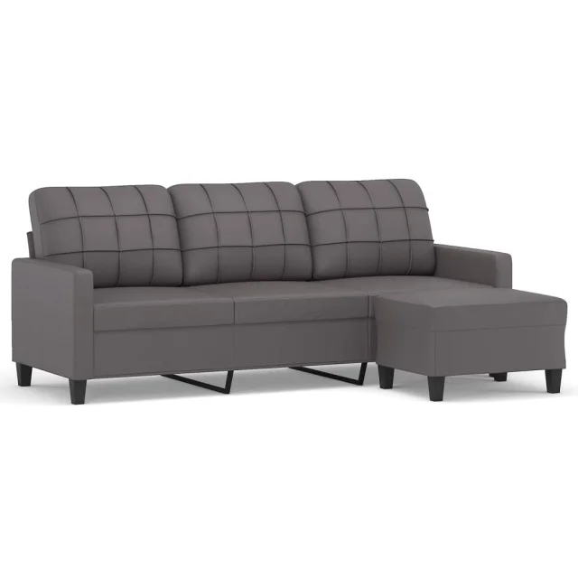 kavč - Sofa - Kanape trosed s stolčkom za noge siv 180 cm umetno usnje