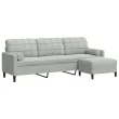 kavč - Sofa - Kanape trosed s stolčkom za noge svetlo siv 210 cm žamet