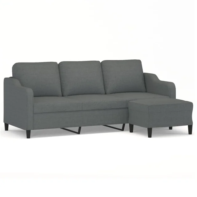 kavč - Sofa - Kanape trosed s stolčkom za noge temno siv 180 cm blago