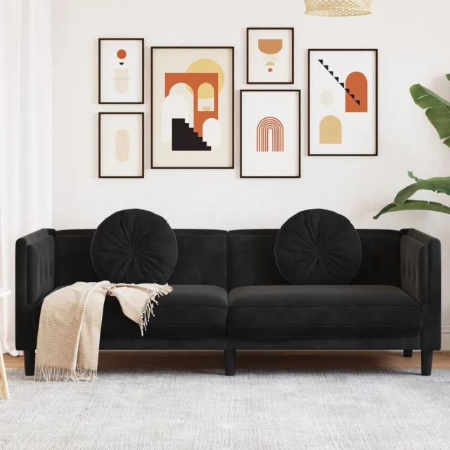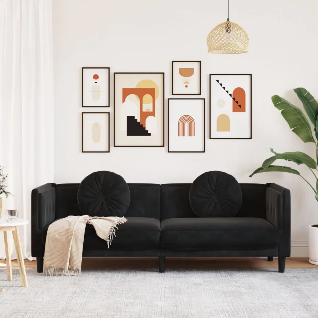 kavč - Sofa - Kanape trosed z blazinami črn žamet