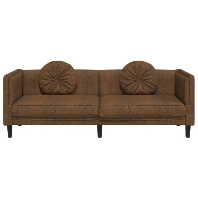 kavč - Sofa - Kanape trosed z blazinami rjavi umetno semiš usnje
