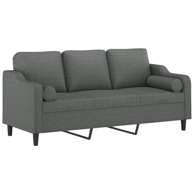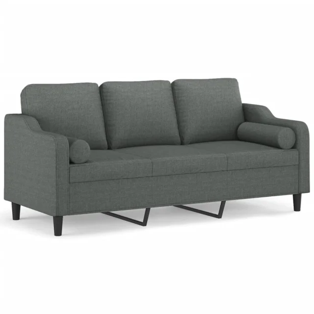 kavč - Sofa - Kanape trosed z blazinami temno siv 180 cm blago