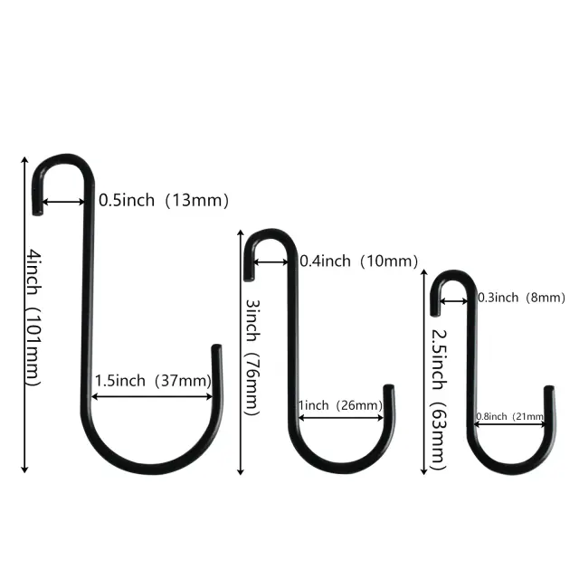 Vsestranski in funkcionalni: naše S kljuke so neverjetno vsestranske in jih je mogoče uporabiti za širok spekter potreb po obešanju. Obesite kuhinjske pripomočke, lonce, ponve, skodelice, brisače, kopalne plašče, oblačila, dodatke in drugo. Njihova robustna konstrukcija zagotavlja, da z lahkoto rokujejo z različnimi predmeti.
