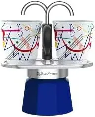 Kavni aparat Bialetti MINI EXPRESS za 2 skodelici, modri geometrijski dizajn