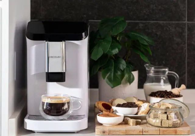 Cecotec Cremmaet Macchia avtomatski kavni aparat je idealen za ljubitelje espressa. Opremljen je z vgrajenim mlinčkom za kavo s petimi nastavitvami mletja in rezervoarjem za vodo 1,5 L. S pritiskom 19 barov in sistemom Plug&Play zagotavlja bogato kremo in maksimalen okus. Enostaven za čiščenje z avtomatsko funkcijo čiščenja, primeren za sodobno kuhinjo.