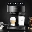 Odkrijte polavtomatski kavni aparat, ki združuje estetiko in funkcionalnost. S sodobnim črnim dizajnom z dodatki iz nerjavečega jekla se popolnoma prilega vaši kuhinji. S sistemom InstantCappuccino hitro pripravite različne tople napitke, vključno s kapučinom. Uživajte v intenzivnem okusu in kremasti penasti plasti, vse to pa omogoča intuitivna kontrolna plošča. Kapaciteta rezervoarja za vodo 1,4 L in mlečnega rezervoarja 500 ml omogoča enostavno in prijetno pripravo.