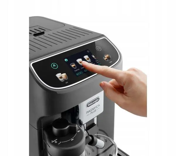 Odkrijte avtomatski espresso aparat DeLonghi Magnifica Plus, eleganten siv aparat, ki pripravlja do 15 vrst kav, od Americano do Cappuccino. Z 3,5-palčnim barvnim zaslonom na dotik lahko enostavno izberete svojo pijačo. Tehnologija LatteCrema zagotavlja popolno mlečno peno za mlečne napitke. Z mlinčkom za kavo iz nerjavečega jekla in prefinjenim italijanskim dizajnom je Magnifica Plus idealna za vsako kuhinjo.