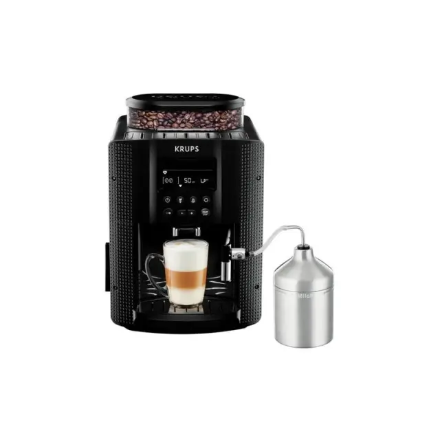 Krups EA 8160 je avtomatski kavni aparat, ki združuje visoko zmogljivost in eleganten dizajn. Opremljen je z vgrajenim mlinčkom za kavo s tremi nastavitvami mletja, LCD zaslonom ter avtomatskimi programi za pripravo espressa, cappuccina in latte napitkov. S pritiskom 15 barov in sistemom Thermoblock je ta kompaktni aparat idealen za pisarno. Odstranljiv rezervoar za vodo s prostornino 1,7 litra in samodejni čistilni sistem omogočata enostavno vzdrževanje. Izdelan iz visokokakovostnih materialov z elegantno črno obdelavo, je popolna izbira za ljubitelje kave.