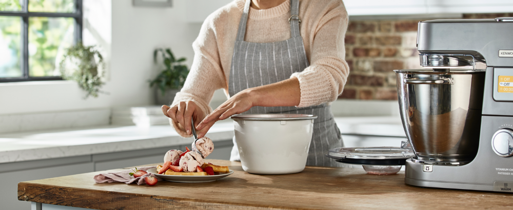 Nastavek Kenwood KAX71.000WH je namenjen pripravi zamrznjenih sladic, kot so domač svež sladoled, zamrzjen jogurt, sorbet ipd. Opremljen je z vsem, kar potrebujete, vključno s posodo za zamrzovanje, lopatico za mešanje in adapterjem za posodo.
