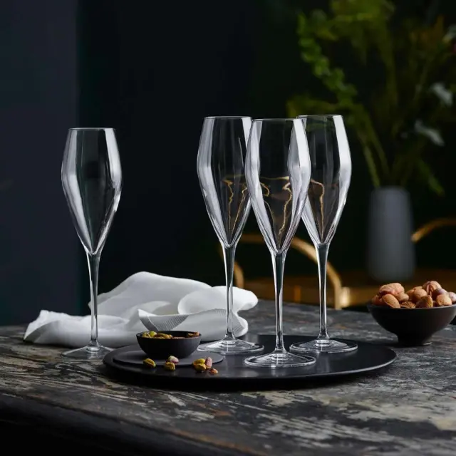 Kelihi ATELIER PROSECCO blagovne znamke Luigi Bormioli so zaradi posebne obdelave ustvarjeni posebej za šampanjce in peneča vina. Njihova edinstvena oblika omogoča izredno močan pretok mehurčkov. Garnitura vključuje 6 elegantnih kelihov. Kelihi so izdelani iz visokotehnološkega pihanega stekla SON.hyx, ki je odporno na lomljenje in primerno za pranje v pomivalnem stroju. Ravno to steklo daje kozarcem posebno čistost, popolno prozornost in bleščeč sijaj.