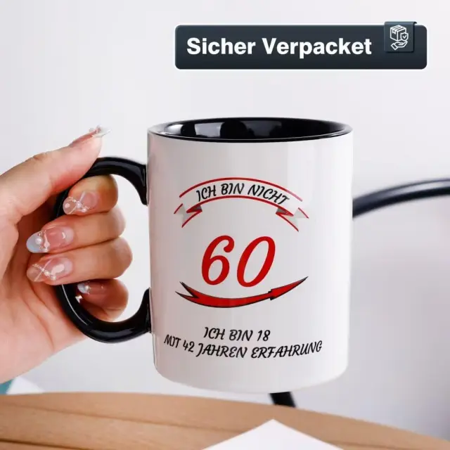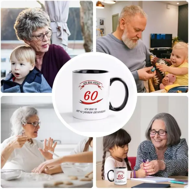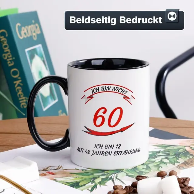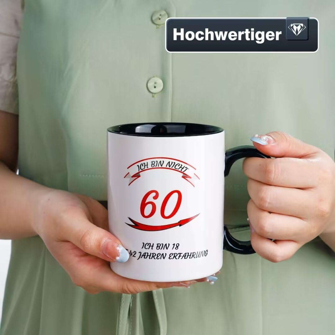 Keramična skodelica NOVAJOY predstavlja elegantno in praktično izbiro za vsakodnevno uživanje v toplih napitkih. Izdelek je zasnovan kot posebno darilo ob 60. rojstnem dnevu, ki ga krasi domiseln napis v nemškem jeziku o življenjskih izkušnjah. Skodelica združuje klasičen dizajn s funkcionalnostjo, saj je primerna za kavo, čaj ali druge napitke v domačem okolju ali v pisarni. Njena bela barva in okrogla oblika omogočata, da se estetsko poda v vsako kuhinjo ali na delovno mizo.