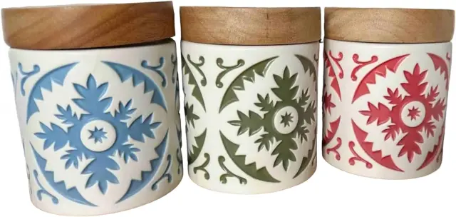 Keramični kozarci za shranjevanje: Predstavljamo naš komplet 3 velikih vintage zaprtih keramičnih kozarcev za shranjevanje, idealen dodatek za vsako kuhinjo. Ti kozarci, izdelani iz trpežne keramike, so elegantni in funkcionalni ter popolni za bistvene stvari vaše shrambe. Neprodušno shranjevanje: s temi nepredušnimi kozarci naj bodo sestavine sveže in okusne. Njegovo priročno tesnilo zagotavlja, da vaš čaj, kava ali sladkor ostanejo najboljši, njegova prostornina 900 ml pa zagotavlja veliko prostora za vaše kuhinjske sponke. KLASIČEN VINTAGE DIZAJN: Povzdignite svojo kuhinjo s temi očarljivimi kozarci. Vsak od teh treh kozarcev ima edinstven vintage dizajn, ki vašemu prostoru doda pridih nostalgije. Ta komplet vključuje kozarec v zeleni, modri in rdeči barvi, zaradi česar je čudovit in vizualno privlačen dodatek vaši kuhinji. Vsestransko kuhinjsko shranjevanje: Ti kozarci niso omejeni na enkratno uporabo. Čeprav so kot nalašč za čaj, kavo in sladkor, njihova vsestranskost ni omejena. Uporabite jih za shranjevanje različnih kuhinjskih pripomočkov, od testenin in kosmičev do piškotov in prigrizkov PREPROSTO VZDRŽEVANJE: Čiščenje in vzdrževanje naših nepredušnih keramičnih kozarcev za shranjevanje je prava stvar. Zaradi gladke glazure je čiščenje razlitja in umazanije hitro. Samo ročno jih operite z blagim detergentom in v hipu bodo pripravljeni za vaše kuharske potrebe