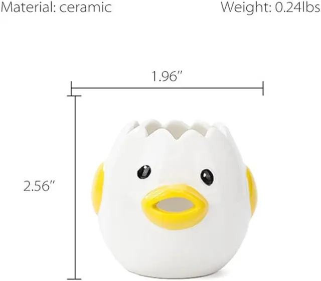Nova zasnova: Ločevalnik za bruhanje jajc ima ročno narisano zasnovo, ljubko risano podobo piščančka, lahko je simfoničen za vsako priložnost, piščanček bruha, kar kuhinji doda več zabave【Enostaven za uporabo】Vstavite jajca v separator, in nato pustite, da jajca pritečejo neposredno iz piščančjih ust, tako da beljak ne izteče iz rumenjaka. Postopek je hiter in zabaven. Visokokakovosten material: Keramični ločevalnik jajc je izdelan iz keramičnega materiala z gladko notranjo steno, ki je čistejši, bolj zdrav in varen od navadnih plastičnih ločevalnikov [Enostavno čiščenje] Ta ločevalnik jajc je enostaven za čiščenje in lahko peremo ročno z vodo ali detergentom ali v pomivalnem stroju, uporabljamo pa ga lahko tudi v mikrovalovnih pečicah, pečicah in dezinfekcijskih omaricah. Popolno darilo: Novost in srčkan, praktičen in učinkovit za ločevanje rumenjakov in beljakov v kuhinji, pekarni, na prostem. Če želite obdarovati prijatelje in družino, je ta ločevalnik jajc dobra izbira. Vse starosti