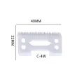 Gladki, učinkoviti rezi: Natančno zasnovana oblika rezila C-4W zagotavlja gladko in učinkovito striženje las. Njegova natančna geometrija omogoča, da brez težav drsi skozi lase, zmanjšuje vlečenje in zatikanje. To ima za posledico udobnejšo izkušnjo za uporabnika in čistejšo, bolj enakomerno frizuro. Ne glede na to, ali obrezujete, oblikujete ali izvajate podrobna dela, to rezilo zagotavlja nadzor in natančnost, potrebna za enostavno in samozavestno doseganje želenega sloga. Njegovo gladko delovanje zagotavlja profesionalen zaključek vsakič.