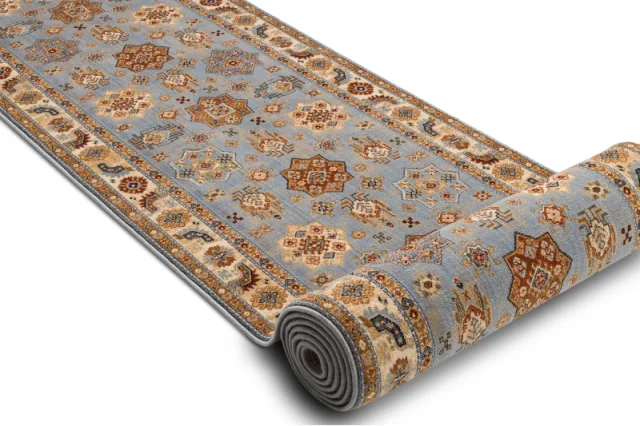 KESHAN tekač 7683/53544 Okvir, oriental modra / bež 90 90x300 cm