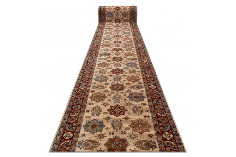 KESHAN Volnena tekač 7683/53555 Oriental, okvir bež / terakota - 90 90x820 cm