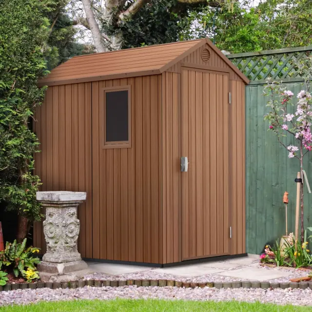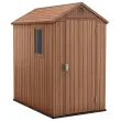 Lopa ponuja veliko prostora za shranjevanje koles, orodja in/ali vrtnega pohištva. Dvojne 16 mm plošče imajo videz lesa, vendar nudijo udobje plastike, odporne na vremenske vplive in UV žarke. Talne plošče in integrirano prezračevanje bodo ohranjali notranji prostor dobro prezračen in pomagali zaščititi stvari pred vlago.