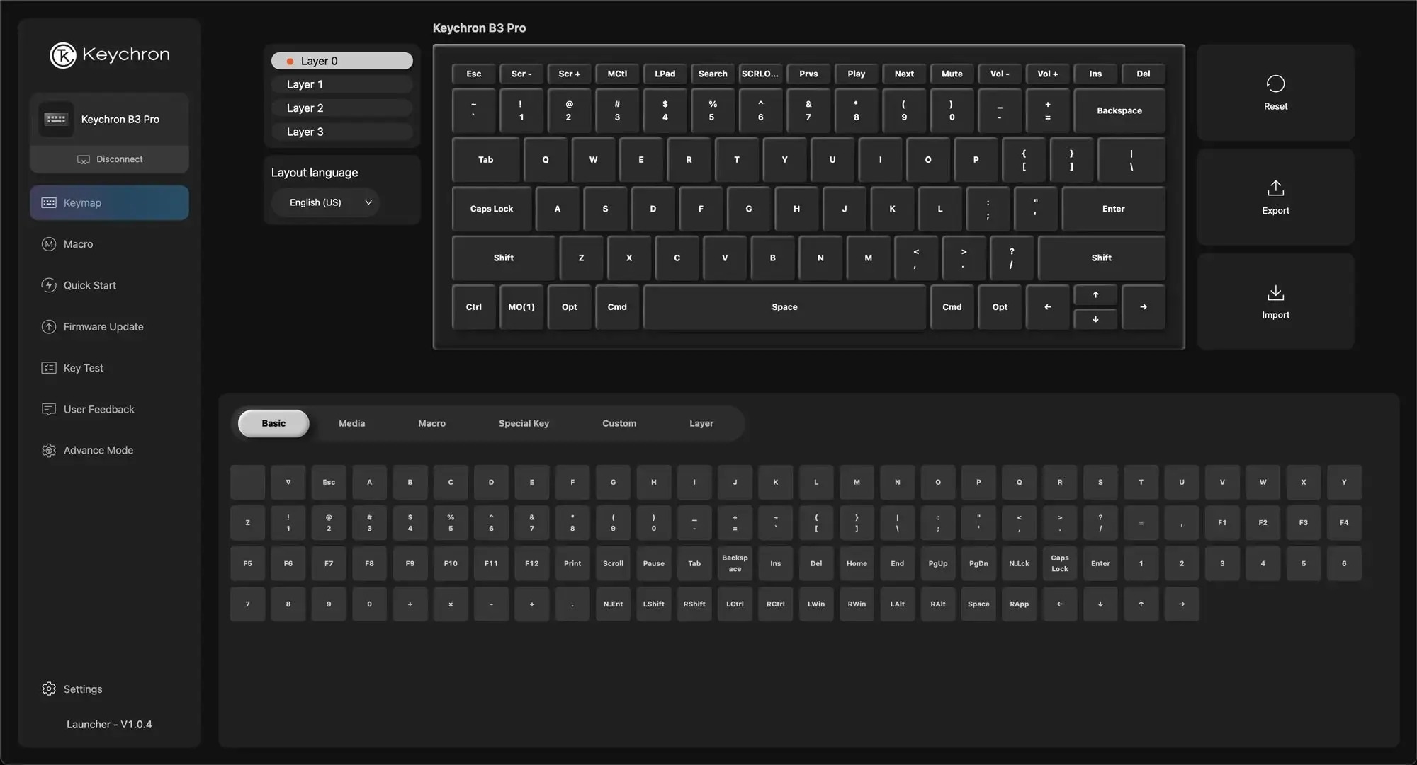 Programiranje naprave B3 Pro z zaganjalnikom Keychron Launcher.