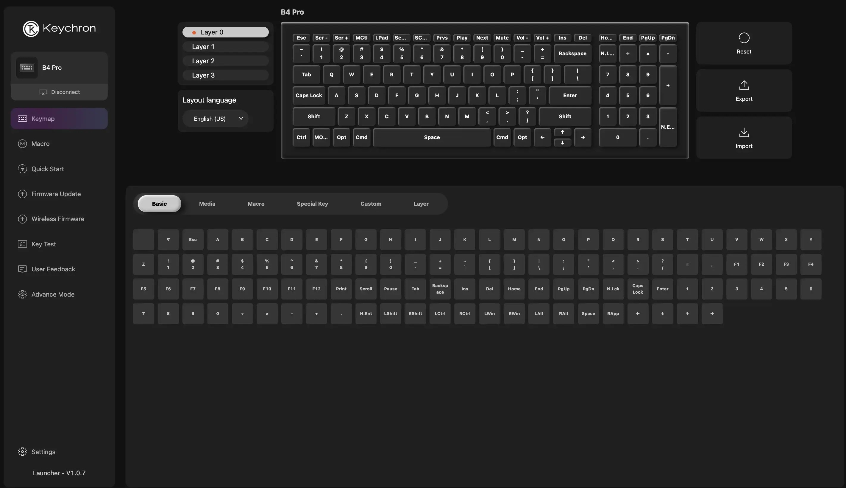 Odkrijte neskončne možnosti prilagajanja s spletno aplikacijo Keychron Launcher, ki vam omogoča enostavno prestavljanje tipk, ustvarjanje makrov, bližnjic in še več.