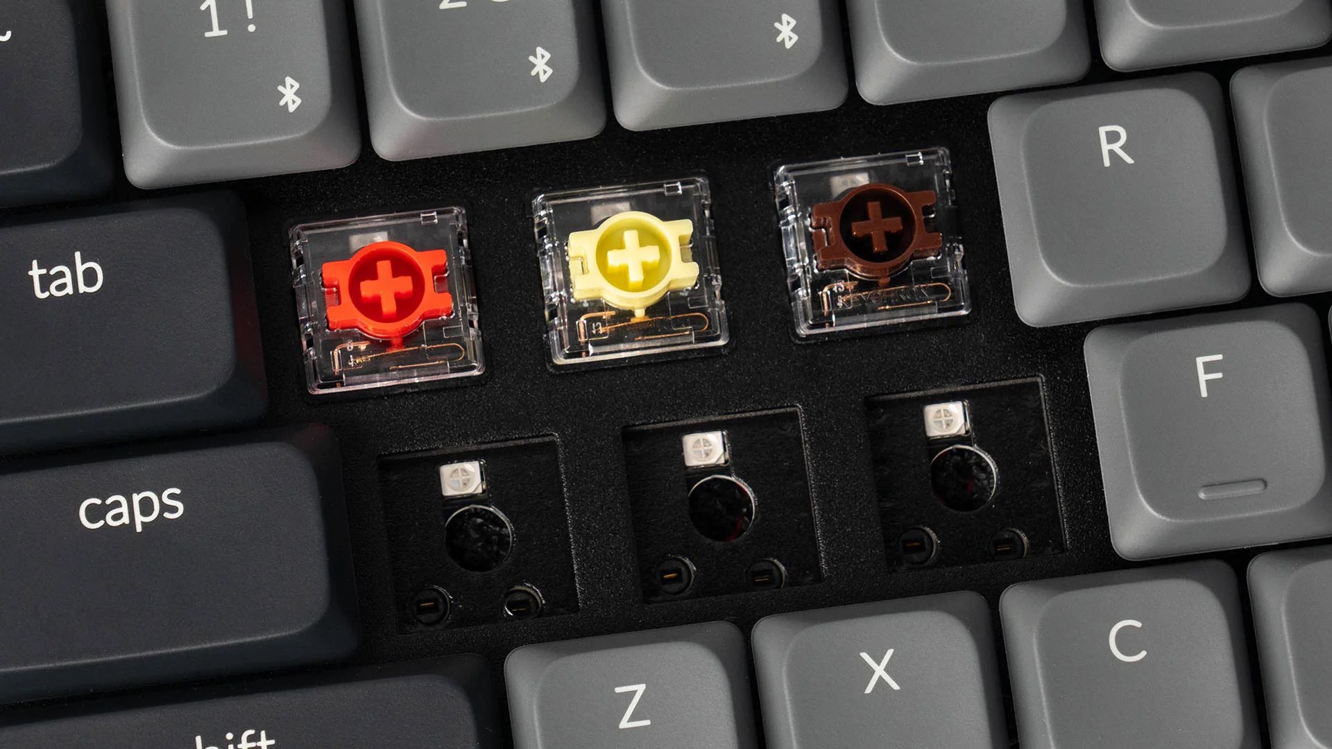 Na izbiro imamo tudi različico z vročo zamenjavo, kar pomeni, da lahko svojo izkušnjo tipkanja prilagodite brez spajkanja, vstavite jo in končano.