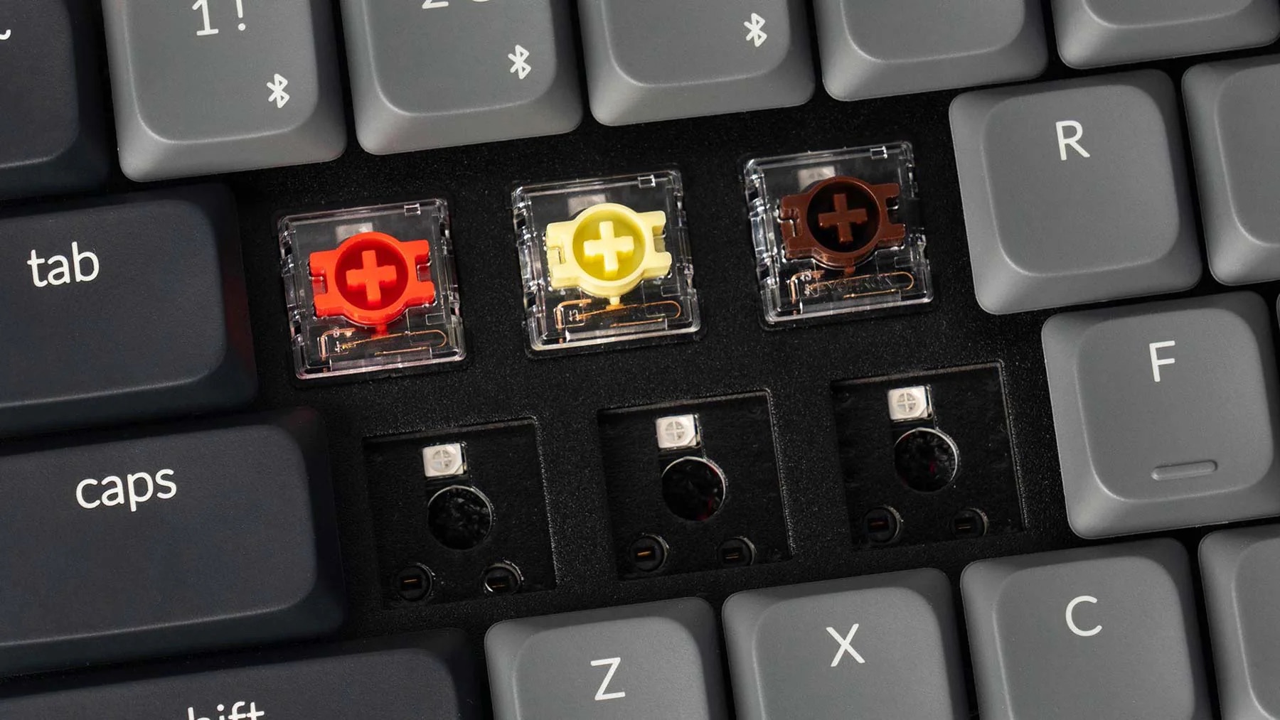 Vsi imamo svoje edinstvene preference pri tipkanju, zato pri različici 3 modela K3 ponujamo možnost zamenjave v vročem stanju, tako da lahko v nekaj sekundah preprosto zamenjate katero koli nizkoprofilno mehansko stikalo Keychron 2.0 in prilagodite svojo izkušnjo tipkanja brez spajkanja.