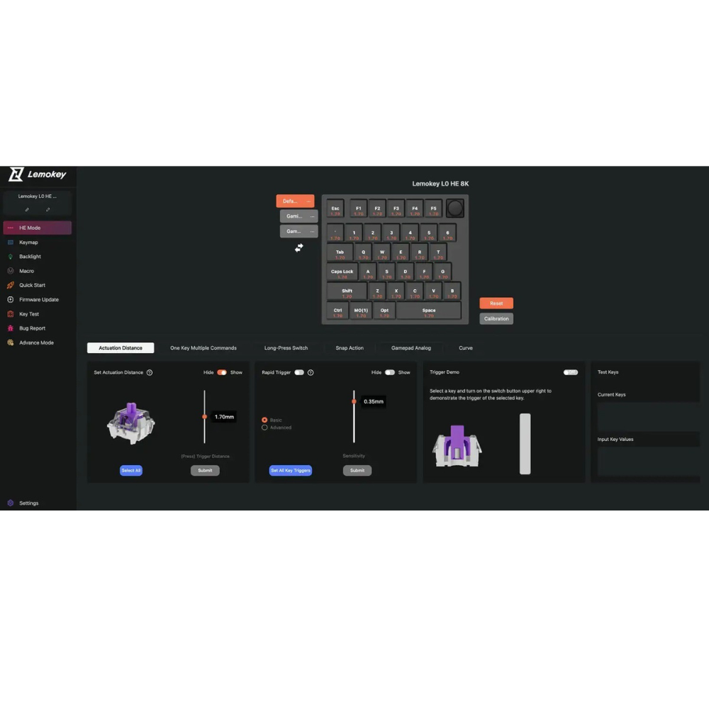 Predstavljamo Lemokey L0 HE – edinstveno enovrstno igralno tipkovnico z magnetnimi stikali, izboljšano s hitrostjo vzorčenja 8K Hz, hitrostjo skeniranja posameznih tipk do 256KHz in kovinskim ohišjem. Značilna je za njo revolucionarno stikalno tehnologijo – namesto mehanskih kontaktov se za merjenje globine aktiviranja uporabljajo magnetni senzorji, ki vam omogočajo popoln nadzor nad odzivom vsakega stikala.