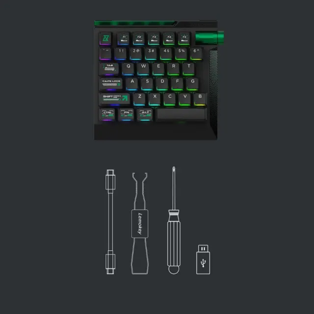 Izbirate lahko med 22 načini RGB osvetlitve (in možnostjo statične bele osvetlitve). Prav tako lahko natančno nastavite RGB barvo, nasičenost, svetlost, hitrost učinka in različne načine, ter te tipke celo ponovno programirate z uporabo spletne aplikacije Lemokey Launcher.