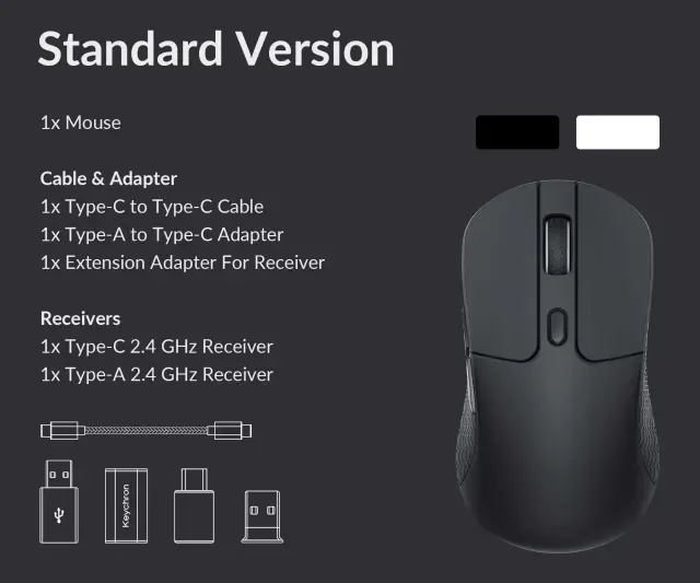 Oblikovana z najmanjšim sprejemnikom 2,4 GHz tipa C in sprejemnikom 2,4 GHz tipa A za miško. Izberete lahko enega od njiju, ga priključite in takoj začnete igrati.
