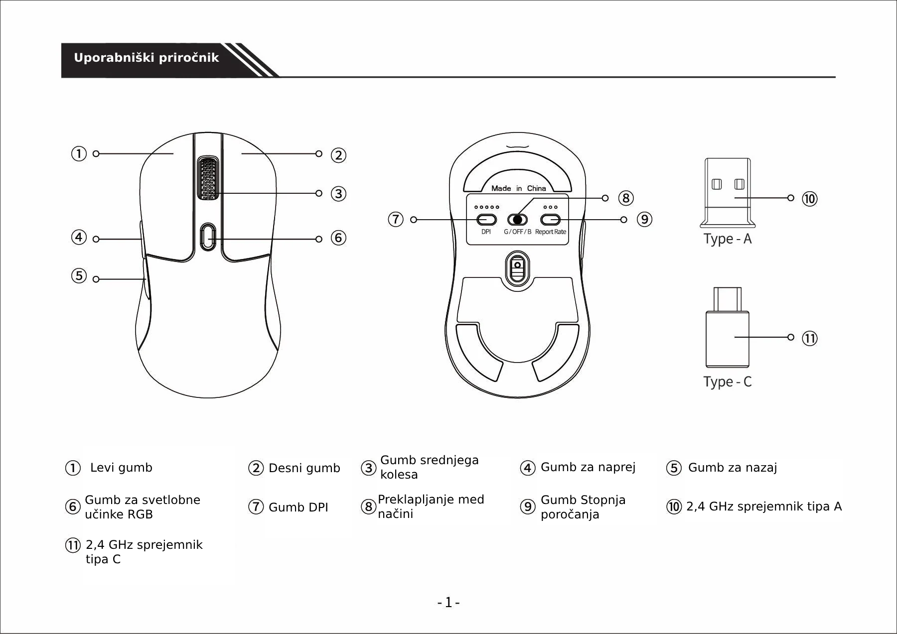 Keychron M3 Brezžična Miška Črne / 4000 Hz / Bluetooth / 2.4Ghz / M3-A1