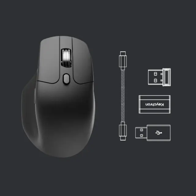 Keychron M6 Brezžična Miška / PixArt 3950 (8000 Hz) / Vsi tiho delujoči mikro stikala / črna / M6S-A23
