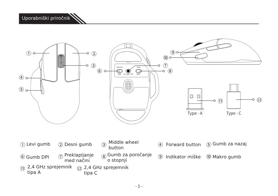 Keychron M7 Brezžična Miška Bela / 1000 Hz / Bluetooth / 2.4 GHz / M7-A3