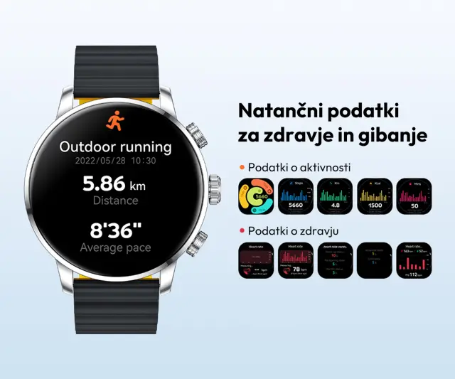 Kieslect Kr2 pametna ura, 1.43"AMOLED, BT., srebrna