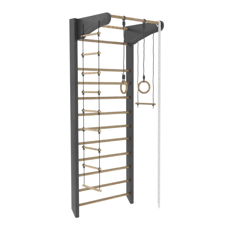 Lesena gimnastična lestev Kinder Sport je okolju prijazna rešitev za otroke in odrasle, ki se radi ukvarjajo s športom skozi vse leto. Vsak steber lestve je sestavljen iz dveh delov. Gimnastična lestev spodbuja motorični razvoj, to usklajevanje vadi vse dele mišic. Razširjena je z gimnastičnimi koleni, vrvjo in vrvno lestvijo. Gimnastična lestev je izdelana iz borovega lesa. Da se bo malček lahko športno udejstvoval sproti in udobno, je bolje razmisliti o športnem kotičku na dosegu roke.