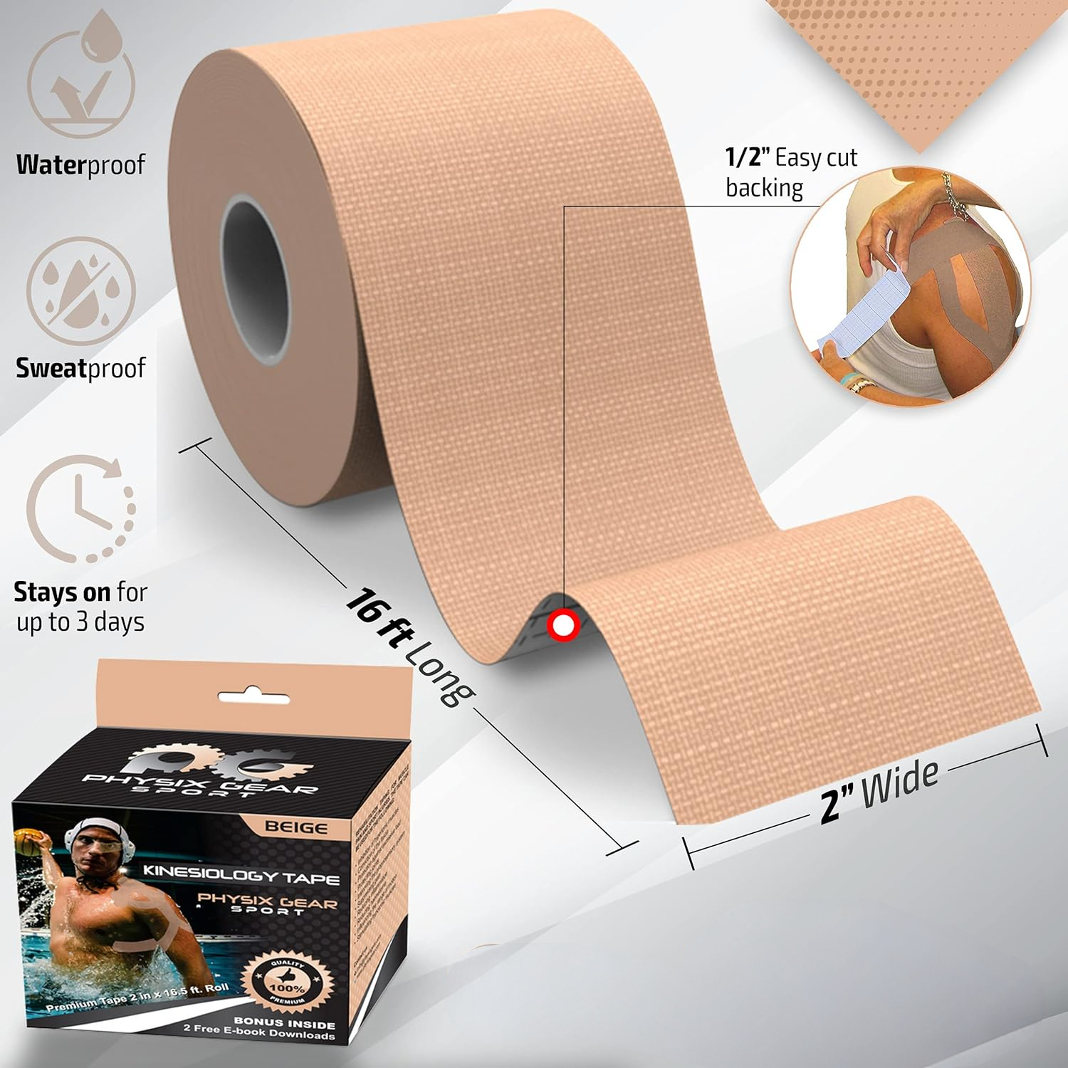 Kineziološki trak Physix Gear Sport nudi vrhunsko stabilizacijo in zaščito med fizično aktivnostjo, hkrati pa s svojo vodoodporno formulo in koži prijaznimi materiali zagotavlja dolgotrajno udobje. Z uporabo priloženega vodnika boste dosegli optimalne rezultate pri vsakem športnem izzivu. Zagotovite si svojo profesionalno podporo in naročite trak, ki bo poskrbel za vašo varnost pri vsakem koraku.