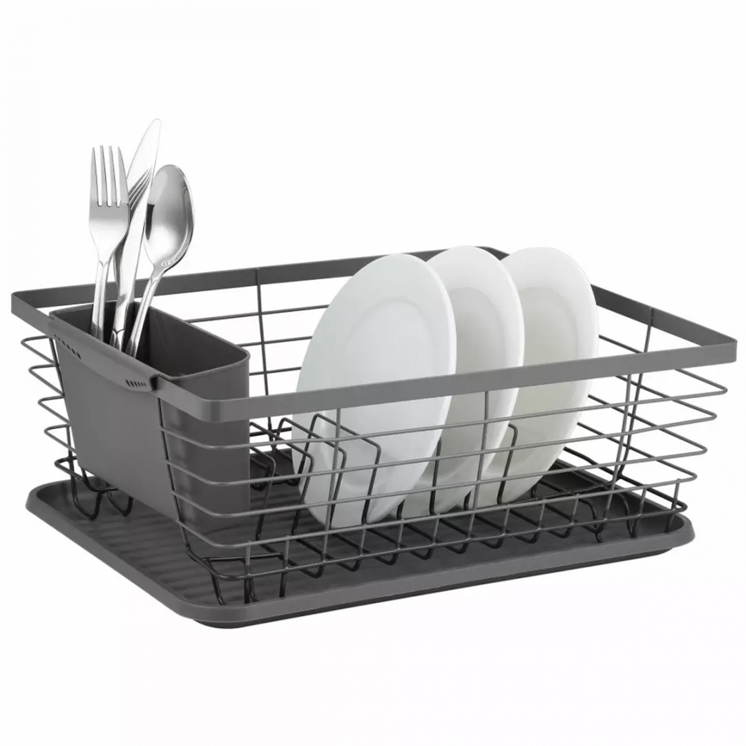 Odcejalnik za posodo s pladnjem, črn, izdelana iz visokokakovostne kovine je izjemno funkcionalen dodatek, ki bo postal nepogrešljiv element vsake kuhinjske opreme. Priročno sušenje posode na pravilno oblikovanem sušilniku preprečuje nenamerno zbijanje skodelice ali krožnika, kar ima za posledico njihovo poškodbo ali celo razbitje. Tudi če imamo pomivalni stroj, je sušilni stroj uporaben za pospravljanje posamezne ročno pomite posode.