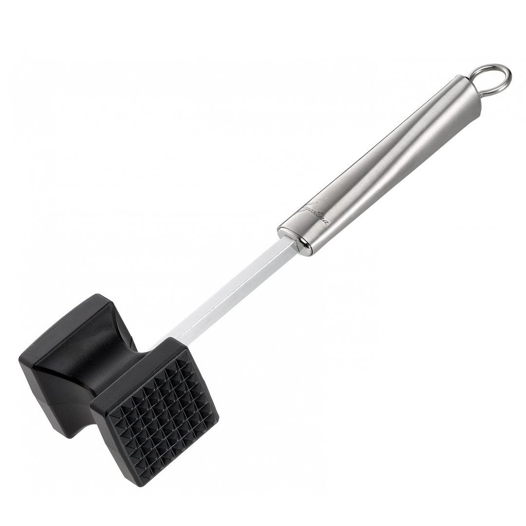 Ročaj je izdelan iz visokokakovostnega nerjavečega jekla 18/10, ki je odporno proti koroziji in živilskim kislinam. Ergonomsko oblikovan ročaj ima na koncu priročno odprtino, ki služi za obešanje. Kladivo za meso lahko pomijete v pomivalnem stroju, ne da bi pri tem ogrozili njegovo funkcionalnost.