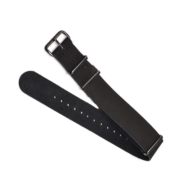 Varna zasnova s trojno zanko: Edinstvena zasnova s trojno zanko tega paščka za uro zagotavlja večjo varnost in preprečuje zdrs. Vsaka zanka je skrbno zašita in ojačana, da prenese vsakodnevno obrabo. Robustna črna zaponka zagotavlja trdno zapiranje, ki ohranja vašo uro varno na mestu. Ne glede na to, ali se ukvarjate z aktivnimi dejavnostmi ali preprosto preživljate dan, lahko zaupate, da bo ta pašček ohranil vašo uro varno.