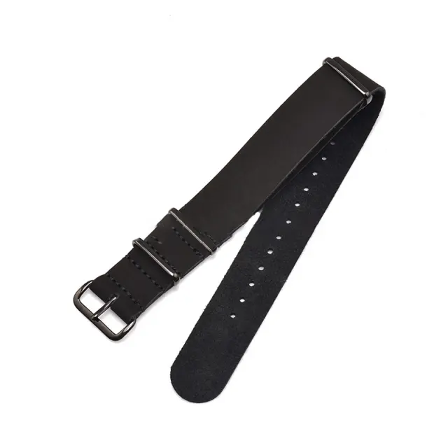 Varna zasnova s trojno zanko: Edinstvena zasnova s trojno zanko tega paščka za uro zagotavlja večjo varnost in preprečuje zdrs. Vsaka zanka je skrbno zašita in ojačana, da prenese vsakodnevno obrabo. Robustna črna zaponka zagotavlja trdno zapiranje, ki ohranja vašo uro varno na mestu. Ne glede na to, ali se ukvarjate z aktivnimi dejavnostmi ali preprosto preživljate dan, lahko zaupate, da bo ta pašček ohranil vašo uro varno.