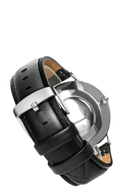 Nežen detajl zaponke: srebrna zaponka pasu dodatno poveča njegovo splošno eleganco in zagotavlja varno prileganje okoli zapestja.