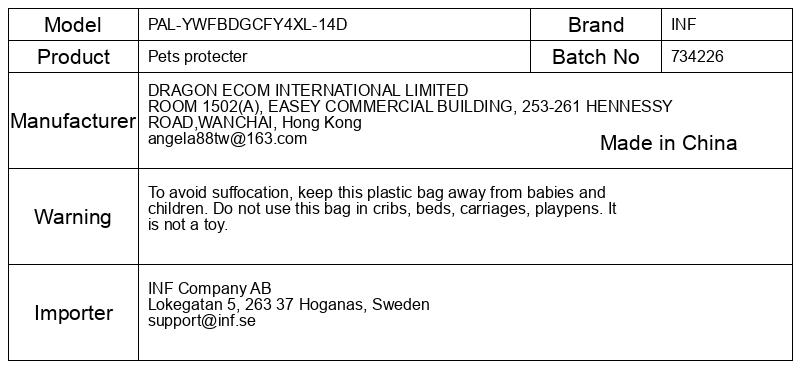 Da se izognete zadušitvi, hranite to plastično vrečko stran od dojenčkov in otrok. Te vrečke ne uporabljajte v zibelkah, posteljah, vozičkih, stajicah. To ni igrača.