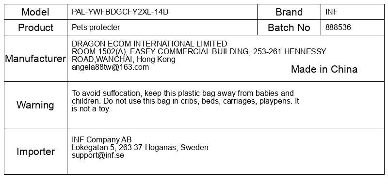 Da se izognete zadušitvi, hranite to plastično vrečko stran od dojenčkov in otrok. Te vrečke ne uporabljajte v zibelkah, posteljah, vozičkih, stajicah. To ni igrača.