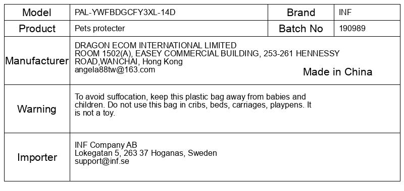 Da se izognete zadušitvi, hranite to plastično vrečko stran od dojenčkov in otrok. Te vrečke ne uporabljajte v zibelkah, posteljah, vozičkih, stajicah. To ni igrača.