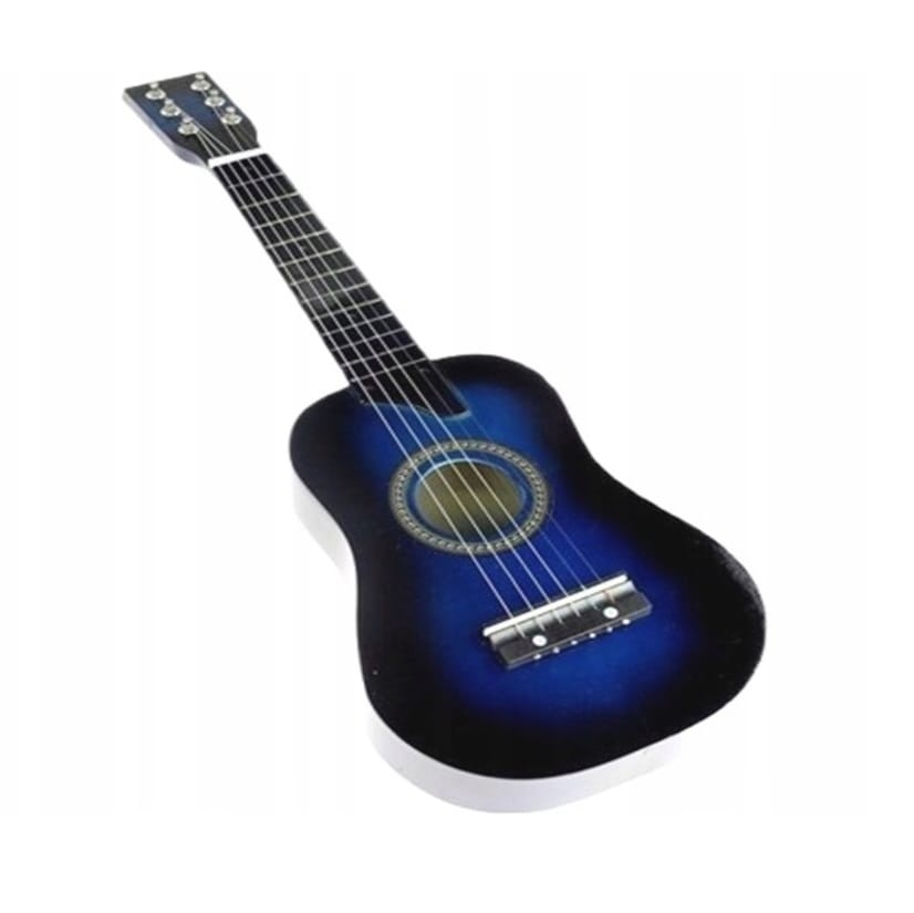Ta klasična otroška lesena kitara v živahni modri barvi in dolžine 60 cm je idealna za otroke, ki se prvič srečujejo z igranjem na glasbilo. Primerna je za starost od 3 do 8 let, saj je ravno pravšnje velikosti, da omogoča udobno držanje in preprosto učenje osnovnih akordov in ritmov.